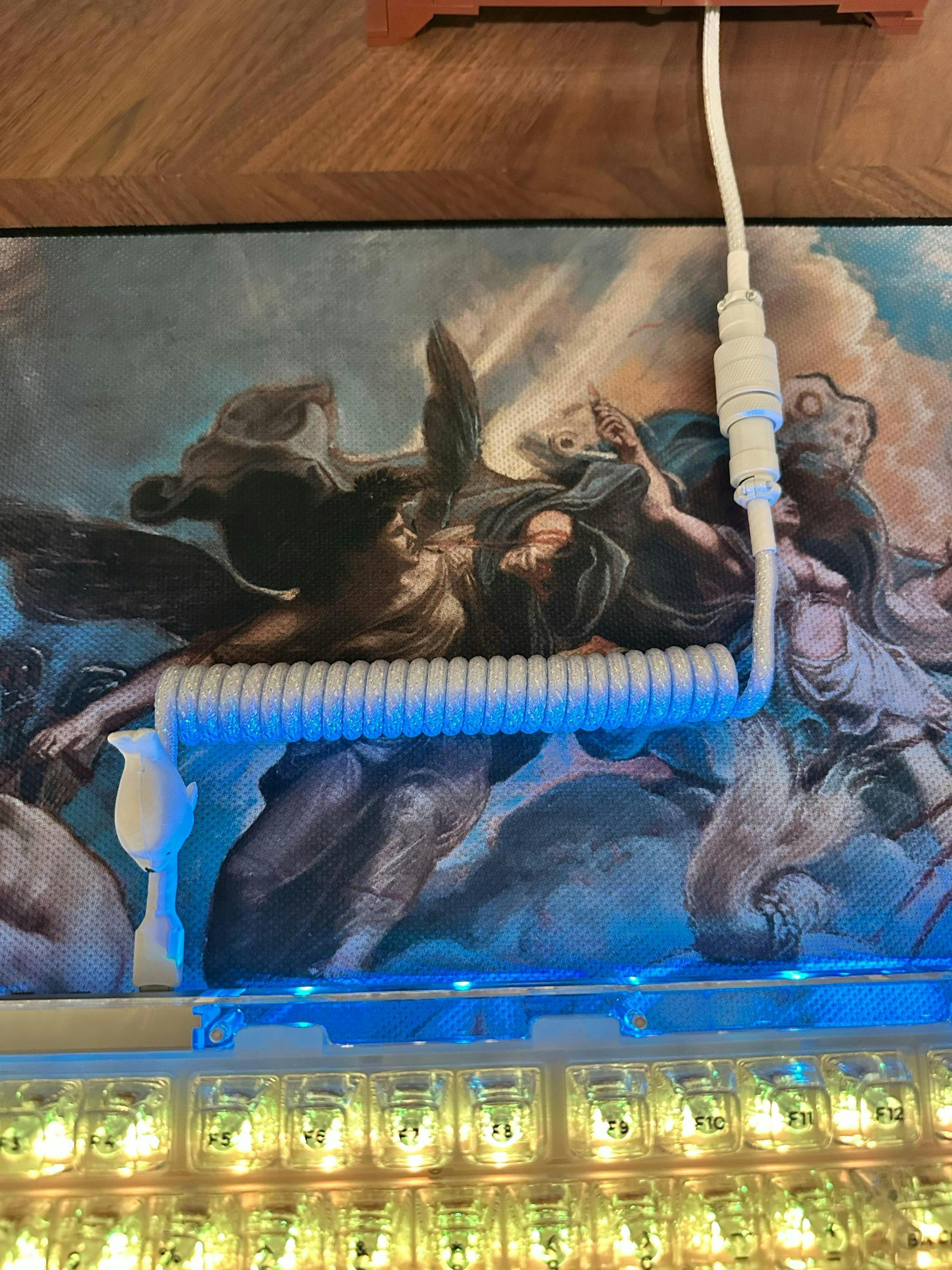 This custom-coiled USB cable is a great match for any white keycaps and mechanical keyboard setups. A premium coiled keyboard cable in a sleek white finish accented by subtle shiny sparks.